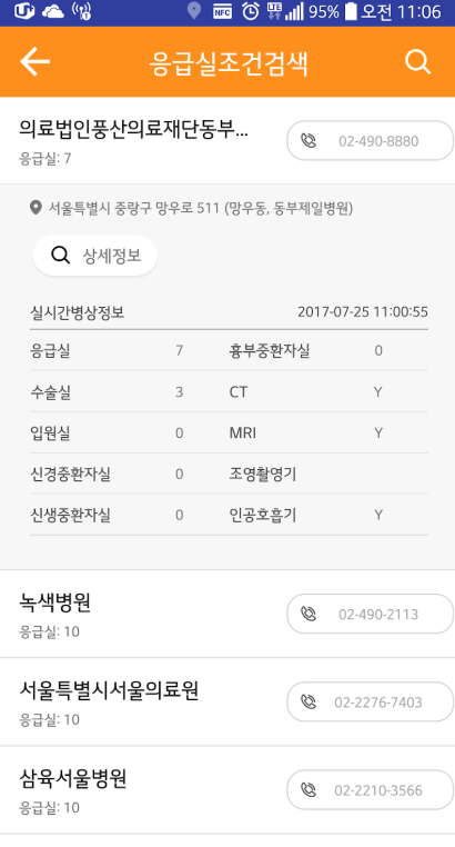 - 현재 위치를 기준으로 가장 가까운 응급실 정보를 제공하고, 실시간 병상 정보까지 확인할 수 있습니다.